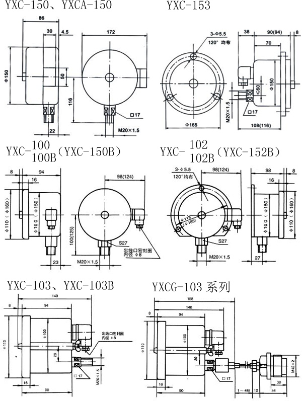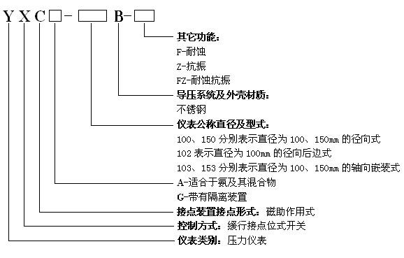 For example: select dial 150mm, range: 0~2.5MPa, M20 * 1.5 interface thread, ordinary material, then type is: YXC-150.