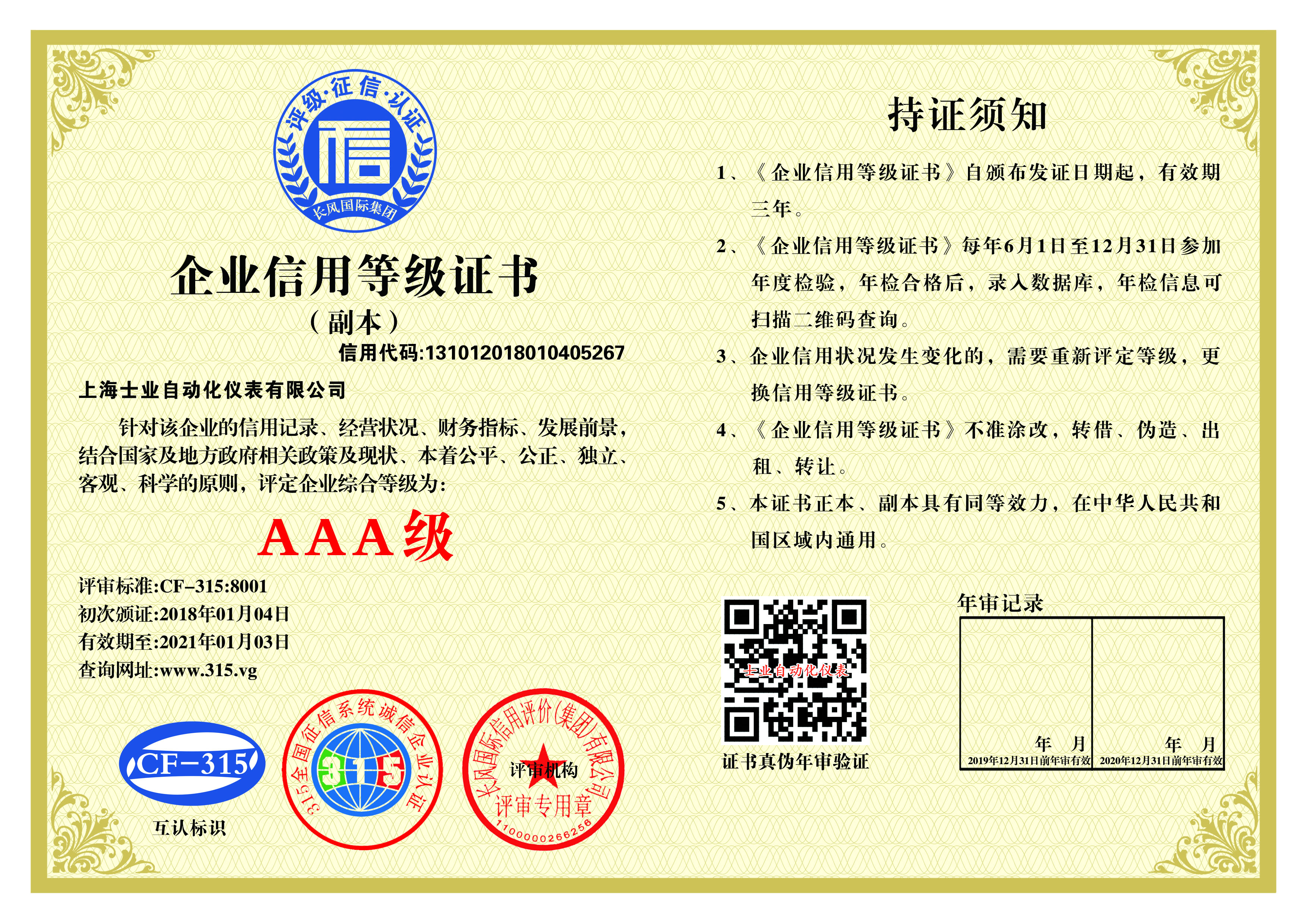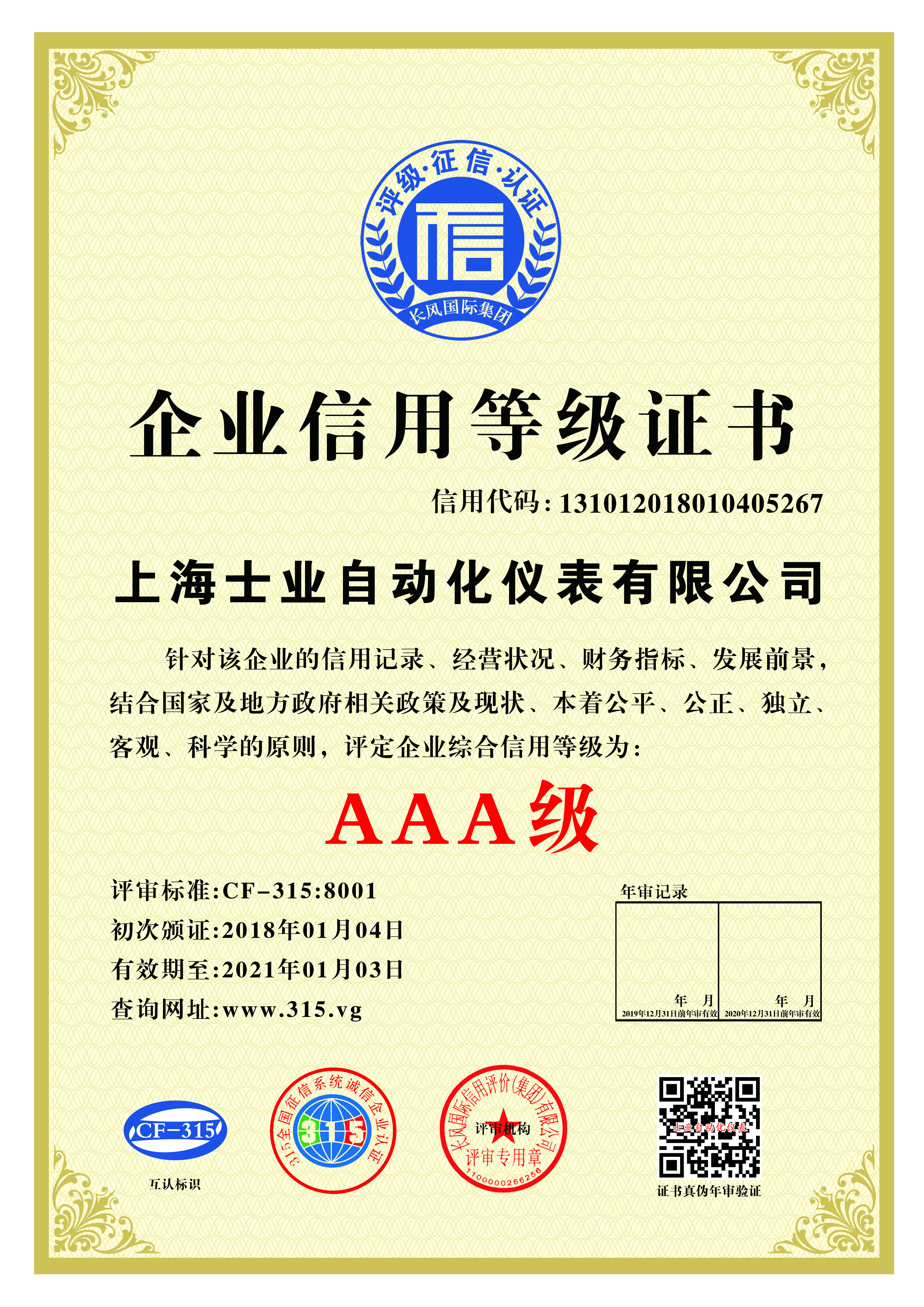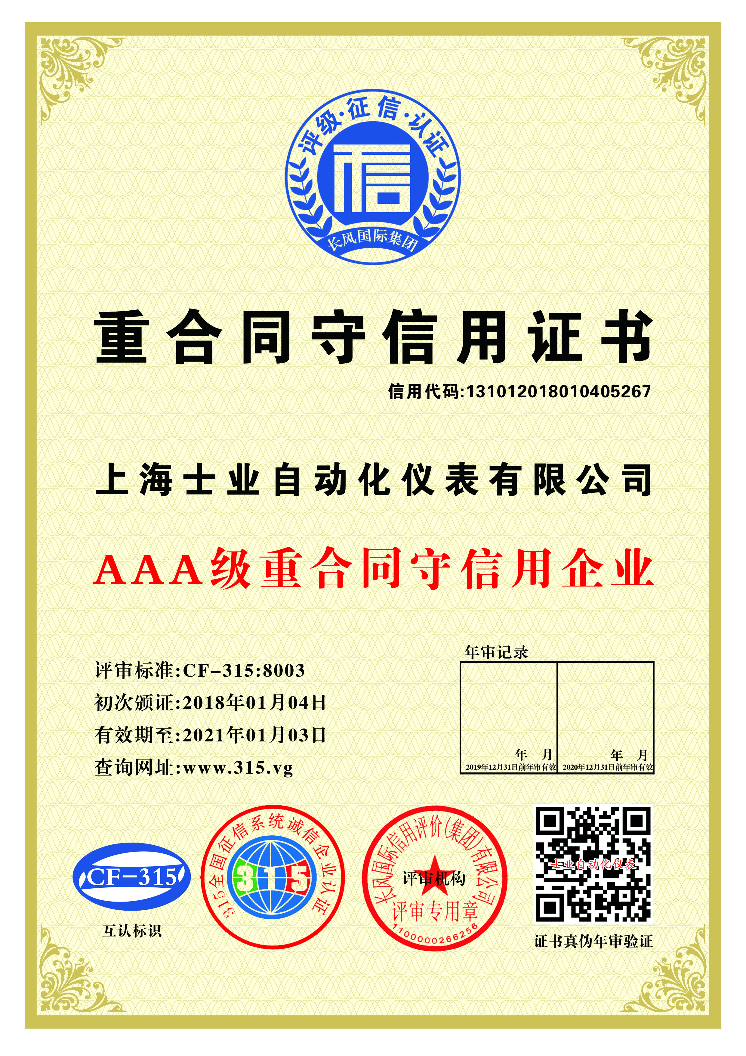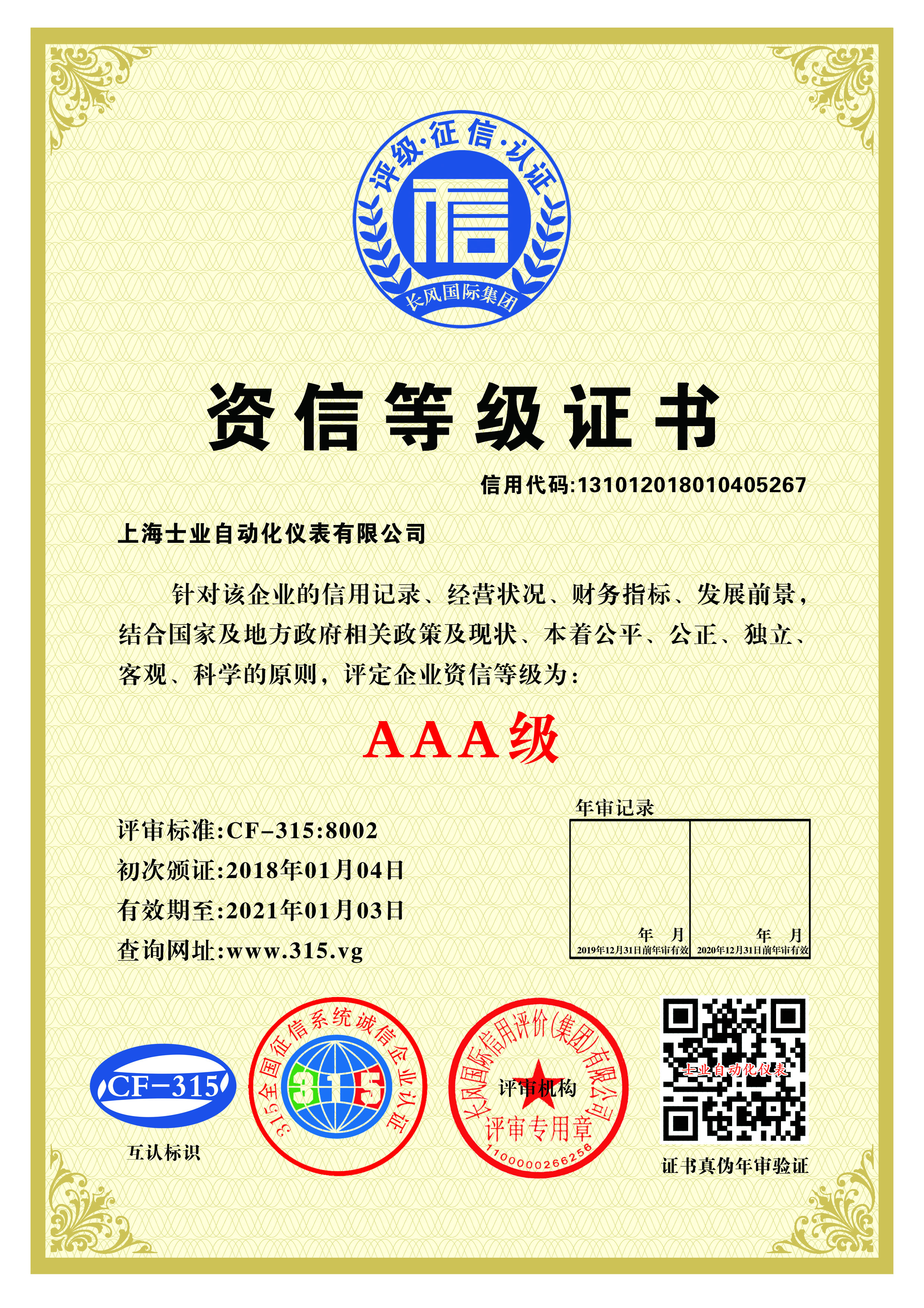 被上海市工商行政管理局認定為“上海工商企業信用AAA級”、“守合同重信用”單位。