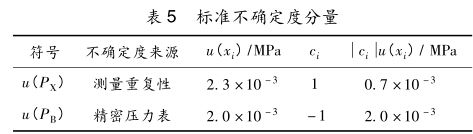 輸入量Px的標(biāo)準(zhǔn)不確定度來源主要是被測(cè)精 密壓力表的測(cè)量重復(fù)性,可通過連續(xù)測(cè)量得到, 用A類方法進(jìn)行評(píng)定。