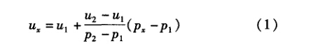 式中:\為需要求出的設(shè)定壓力的分格數(shù);h為設(shè)定的 壓力值;九,外為與凡相近間隔的兩個(gè)巳知壓力值; , u2為與壓力Pi,對(duì)應(yīng)的分格值。