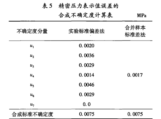 精密壓力表的檢定過程可以認為是一個典型的規 范測量活動,因此對其示值誤差不確定度的評定,可 以采用合并樣本標準差的方法來計算由于測量重復性 所引人的不確定度分量,其具體方法如下。