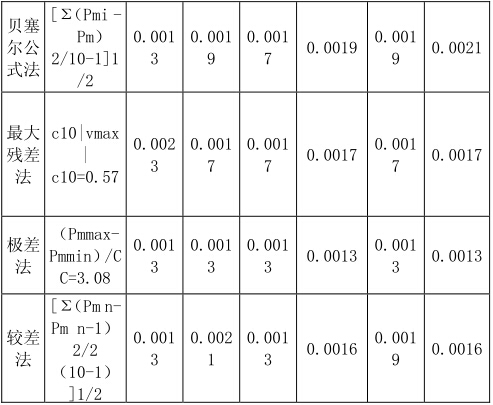 根據(jù)各估算方法的和應(yīng)公式’計(jì)算各檢定點(diǎn)10次測量 標(biāo)準(zhǔn)偏差如下: