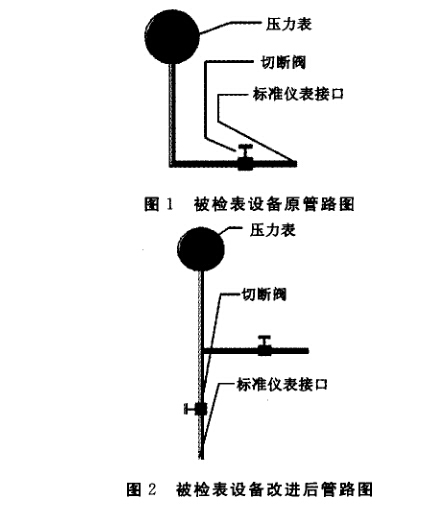 機械化工、醫療、食品等行業的壓力表需用一種 標準裝置對其進行定期檢定,以保證其使用性能符 合相關標準的要求。壓力表的檢定過程是把壓力表 從設備上拆下來,然后拿到實驗室并安裝在壓力表 校驗器上,按照國家的檢定規程要求,完成該壓力表 的檢定工作后,再從壓力表校驗器上把該壓力表卸 下來,重新再安裝到設備上。這種常規的檢定方式 有以下缺點:1)過程比較繁瑣,中間環節較多,用時 較長;2)將壓力表安裝到設備上后,容易導致密封不 嚴,造成泄漏;3)由于有些設備的額定壓力很大,達 到100 MPa(俗稱1 000 kg壓力),拆卸壓力表的過 程中,也容易損壞相應的壓力管道及設備上的其他 器件,操作不當還會引起安全事故。