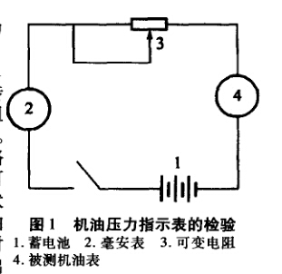 用萬用表R xl檔測量電熱線圈是否有斷路、短 路現象,其阻值應為18. 5 ±0.5 n。在電熱線圈完好 的條件下,按圖1所示電路接人毫安表,檢查機油壓 力指示表在各種規定電流下的指針偏轉值是否符合 規定。