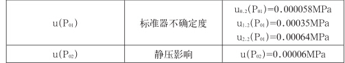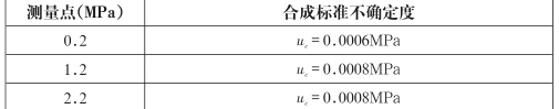 對本傳遞標準,其估讀數為0.001 MPa,半寬區為0.001 MPa,儀表讀數為均勻分布,置信因子k=辦。