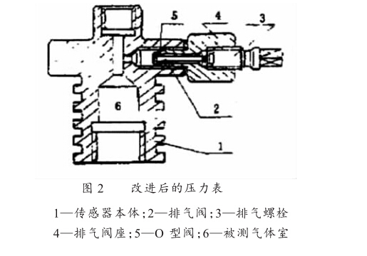 (1)排氣閥選材不妥。采用普通碳素鋼進行熱處 理,排氣閥極易被腐蝕,嚴重破壞了線型密閉環的密封 作用,造成泄漏。(2)排氣閥關閉是靠外力通過螺紋緊 密,但是由于操作者用力不同及針閥熱處理原因,造成 針閥表面出現壓痕(即臺溝),破壞了排氣閥的密封,造 成泄漏。⑶原排氣閥加工精度要求較高,針閥錐面、螺 紋和閌座面、螺紋的同軸度、表面粗糙度等都必須達到 一定技術要求,否則,同樣會造成排氣閥漏。如我段 1994年11月購進31塊新爆發壓力表,由于排氣閥加工 精度不高,我們在進行人庫檢定時,發現全部泄漏,將 這些表全部退回。(4)該表排氣閥開啟、關閉頻繁,排氣 針閥和閥口極易產生積碳,影響排氣閥的密封而泄漏。