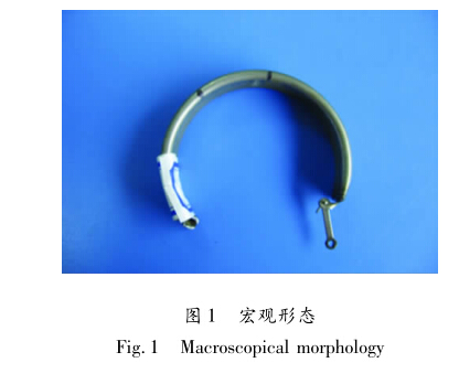 宏觀觀察到失效彈簧管裂紋位置位于彈簧管 的側(cè)邊部,并大約處于彈簧管彎曲弧度的60400° 位置。肉眼可見裂紋長度約為20 mm,見圖1。從 肉眼觀察,斷裂部位未發(fā)生明顯塑性變形,與未失 效的彈簧管進(jìn)行對比,其彎曲弧度沒有發(fā)生變化。