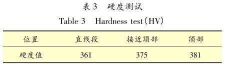 從硬度測試結(jié)果看出,扁圓頂部及附近硬度 較直線段硬度值高,說明頂部是應(yīng)力集中的位置。