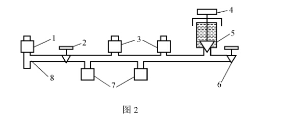從上面的分析可以看出’每次增減壓過程只能 校準一塊壓力表,造成重復操作多。根據帕斯卡液 壓傳遞原理,管路中各點的壓力是一致的,如果將這 個壓力引出來,增加被校壓力表的數量,就可以達到 一次升降檢定多個壓力表的目的,所以需要在原來 壓力表校驗后上稍加改進,增加一個延伸裝置,提高 被校壓力表一次安裝的數量。