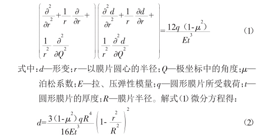 圓形膜片的厚度;R—膜片半徑。解式⑴微分方程得: