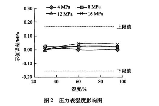 某16 MPa壓力表的濕度影響曲線圖如圖2。
