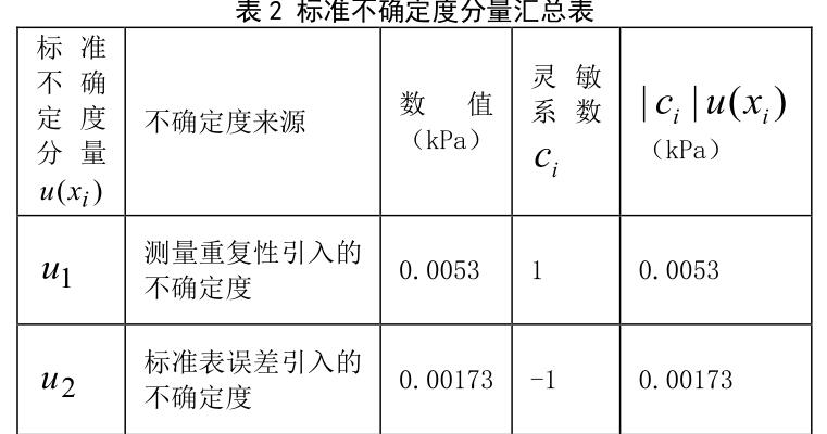 (1)測(cè)量重復(fù)性的影響:在檢定規(guī)程規(guī)定的條件下, 壓力表多次重復(fù)測(cè)量引入的A類標(biāo)準(zhǔn)不確定度