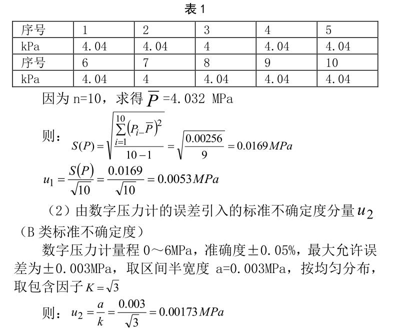 數(shù)字壓力計(jì)誤差的影響:在檢定規(guī)程規(guī)定的條件 下,由數(shù)字壓力計(jì)的誤差引入的B類標(biāo)準(zhǔn)不確定度。
